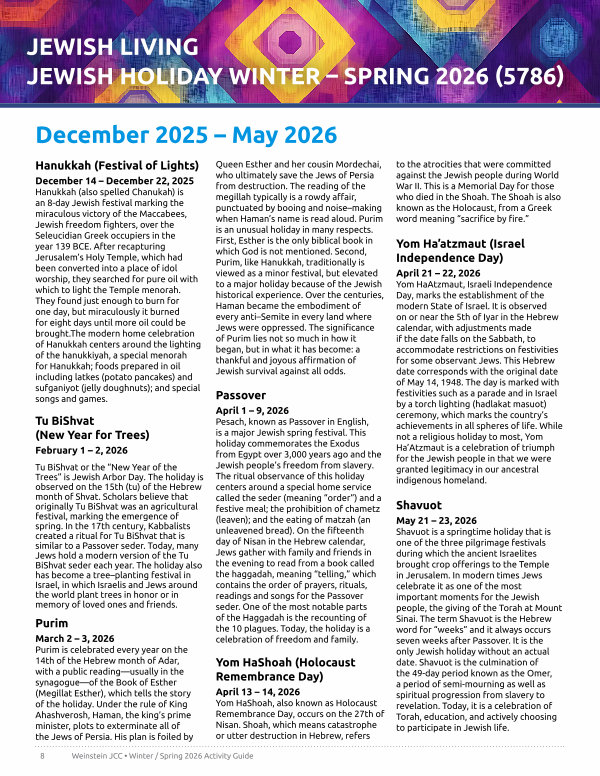 8 Weinstein JCC • Winter / Spring 2026 Activity Guide