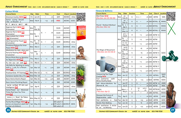 | Feel Good Series: Healthy Mind, Healthy Body | Tue | Jan 13 | 1 | 10:00–11:00 a.m. | $10 | AEFW6 | GCEC |