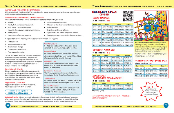 District 622 families who qualify for educational benefits qualify for 50% off of youth classes. Call 651-748-7442 for details.