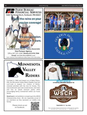 Founded in 1964 and based out of Belle Plaine, MN, the Minnesota Valley Riders Saddle Club has continued to support our mission of familyoriented activities with the love for horses. The club holds both open and closed shows, trail rides and has an award banquet yearly while encouraging family involvement within our horse family.