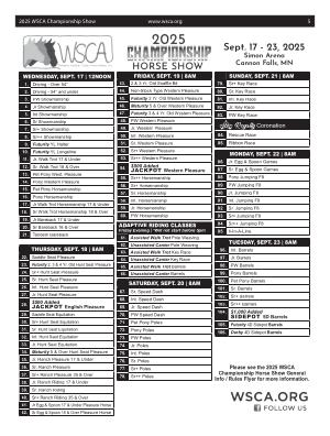 Please see the 2025 WSCA Championship Horse Show General Info / Rules Flyer for more information.