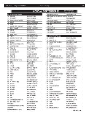 91 INT JUMPING FIGURE 8 102 CONCHO SHANIA SATHER 110 TE YA FOXY MADELYN LUECK 123 MIDAS WELL EATMYDUST JACK WHALEN 128 SCOUT DELANEY DRISCOLL 134 JAKE SAMANTHA DAVIES 172 SHESA FANCY FRECKLE REBEKAH COBB 178 SB HOT BLAZE SYDNEY SCHNEIDER 193 MOUSE MACIE PAHL 198 TEQUILA EZRA BOERNER 201 WILS HOGAN AURORA BROOKS 227 PEPPY GRACE GUSTAFSON 230 SMOKEY TOP CAT DOC MARISSA SCHULLO 235 IMA LADY TWO WATCH BELLA LOCHEN 264 DALLAS LYDIA KRAFT 267 SNIPYS CASHWOOD PETE TYNA LARSON 275 JESS A BOUNCE TAYLOR PESEK 297 PEACHES KATRINA COLLETTE 434 CHEYENNE TAYLOR TABAKA 446 SNAPS HICKORY KARA ONNEN 472 CHANCE ADYSON ROBERTS 501 PEACHES JAEDA JOHNSON 524 CHICKEN MAVERICK BELANGER 528 TWO EYED AND TYPSY BREANNA BERGER 569 BEAU TAYLAR HEJNY 570 ALLY LIZ REICHEL 583 HALLIE EVA GIRDEEN 618 JACK THE RIPPER BRITTANY KREYER 640 WOODDOCLENA LEAH KUCERA 641 RED SHANIA SATHER 660 ARROW MCKENNA LENZEN 673 MOON SOFI ANDERSON 684 POGO LYLA LAVENTURE 708 ACE MACI MORTENSON 759 BLAZE AKA GEE KENNEDY REYNOLDS 790 BULLET KENDRA JOHNSON 802 CHANCE ALYANA HAZELTON 833 CLOVER ALI HELLMANN 845 CHERRY MADISON PESEK 885 BRAVE ANNA CROSBY 935 SUNNY EZRA BOERNER 939 RIO TAYLOR SOMMER 947 INDI ADDY SEARS 964 JUST SIZZLIN MR BACON LILY GRAMS 984 2DS COOSA ROJO ANDREW BORMANN 1001 JOEY BELLA LOCHEN 1010 THREE BUGS BULLION ME AVARIE DUENOW 1052 XENA MADELYN LUECK 1057 CORONA TWO B BLUE MORGAN FITCH