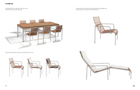 Very limited transport volume and easy to store during winter. Stackable chairs. Wooden slats offer more comfort and dry faster after rain. 59