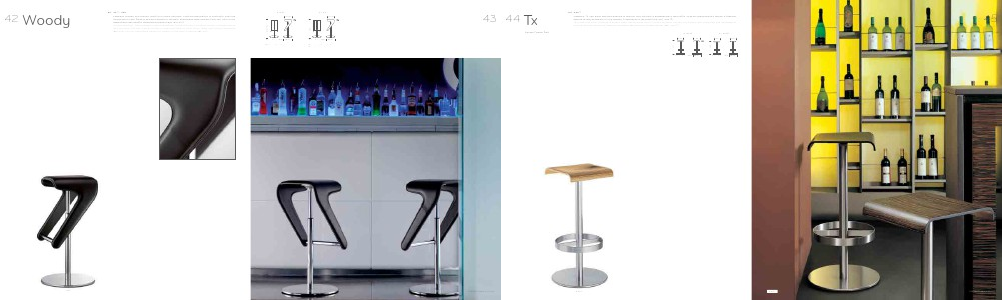 Tx swivel bar stool, brushed stainless steel central base and two rays footring. Curved multilayer seat, bleached oak veneered or