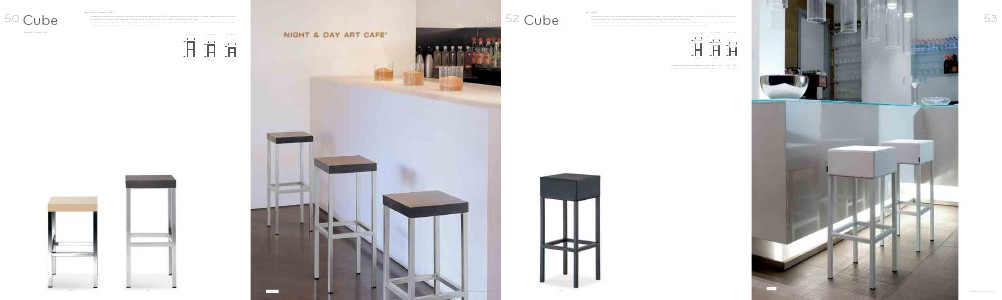 Cube stool, chromed or satinized 25x25 mm square steel tube frame. Bleached oak or stained wengé veneered seat.