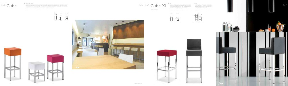 Cube stool, chromed or satinized 25x25 mm square steel tube frame. Injected foam, fire-retardant upholstered seat