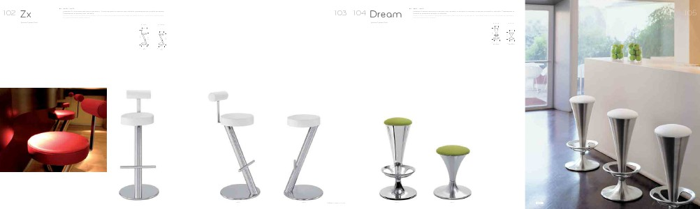 ZX bar stool with central base and Ø 76 mm round brushed stainless steel inclined column. With or without back.