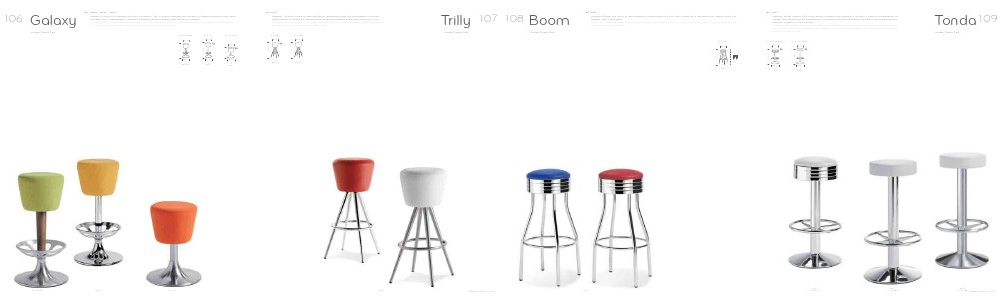 Galaxy stools with satinized or chromed column, fixed or swivel or with solid beech column only for the fixed version.