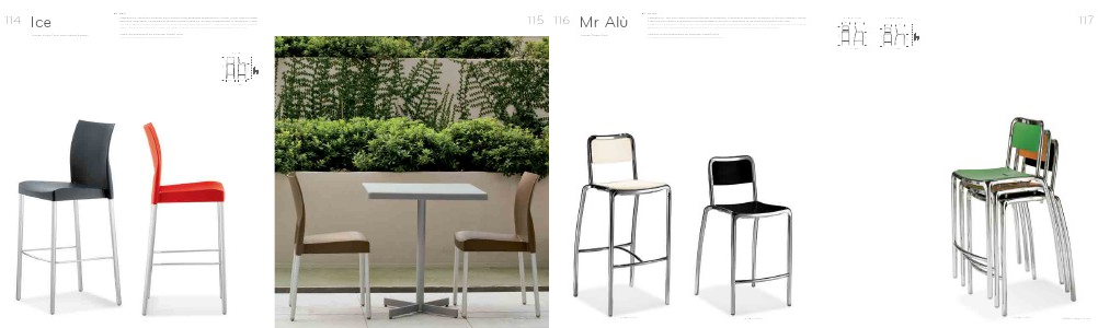 Proposto con seduta e schienale in polipropilene in sei colori. Impilabile la versione con altezza 650 mm.