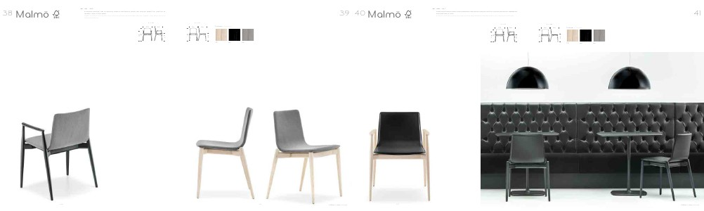 Massimo comfort per le versioni sedia e poltrona Malmö con scocca imbottita, rivestita in