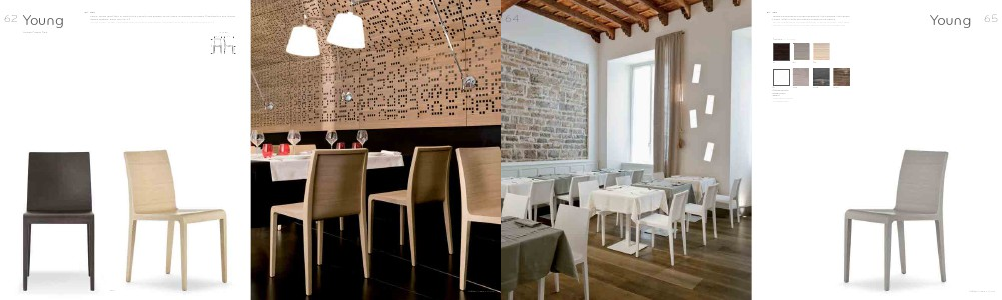 Young chair, curved multilayer shell and solid oak frame. Resistant and light, it weights only kg 3,5.
