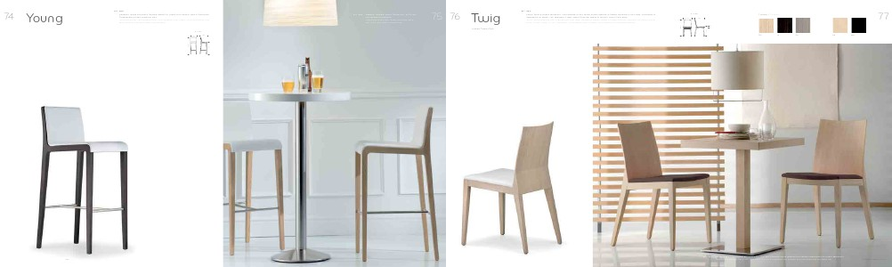 back on both sides, 9 mm thickness. Upholstered seat in fabric, simil-leather or mid grain leather.