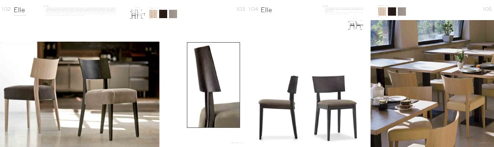 Sedia Elle con gambe in massello rastremate verso il basso. Le gambe posteriori s’innestano nello schienale,