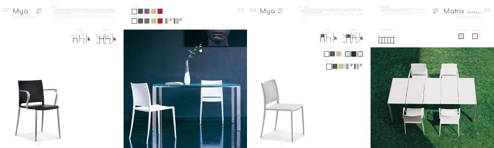 Lightweight and stackable, Mya chair has polypropylene seat and back and die-casted aluminium