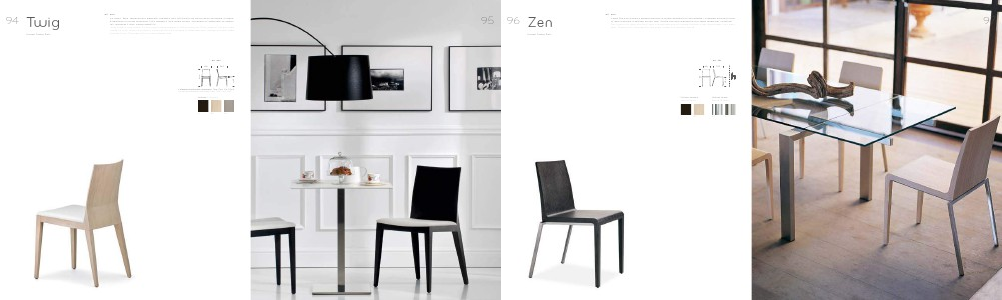 Twig chair in oak wood. Its thin back profile creates a stylish bending. Both sides of the back are
