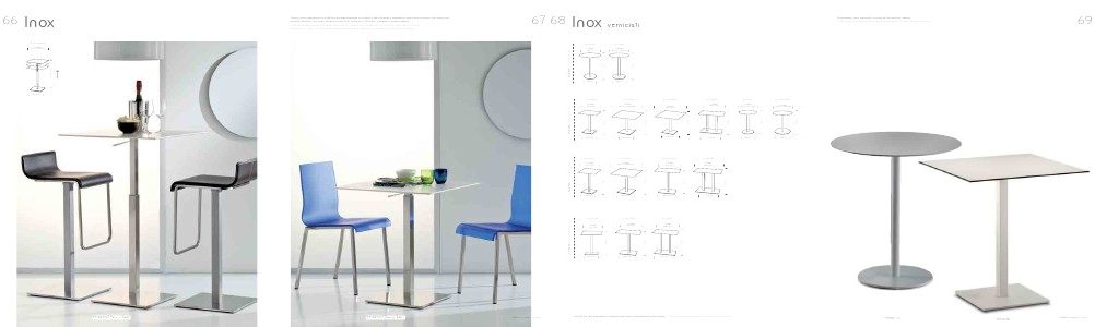 pranzo (altezza 730 mm) diviene tavolo alto (altezza 1155 mm). Sgabelli e sedie Kuadra.