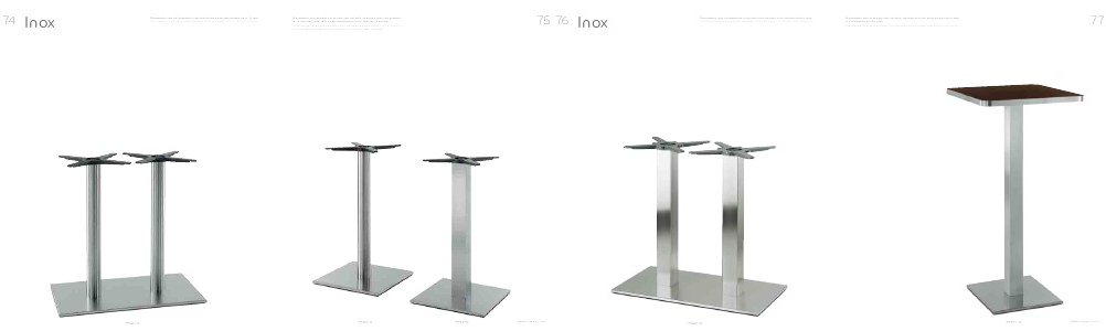 Rectangular Inox table base, brushed stainless steel with Ø 76 mm columns.