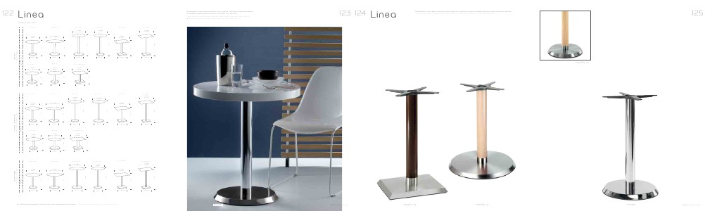 Table base Linea, polished stainless steel base, chromed steel column.