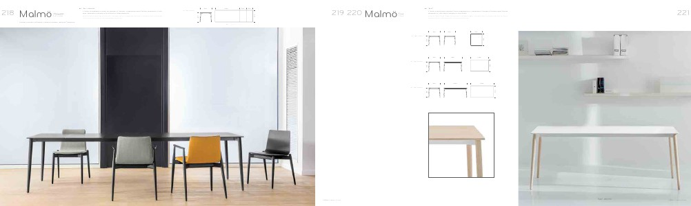 Il tavolo Malmö nella versione fissa è disponibile in 3 dimensioni. Gambe in frassino nelle finiture