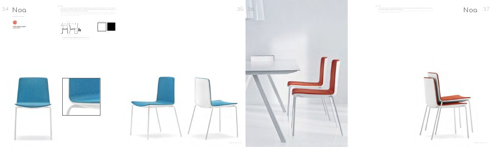 Noa is stackable. The legs are chromed or powder coated in the same colour of the
