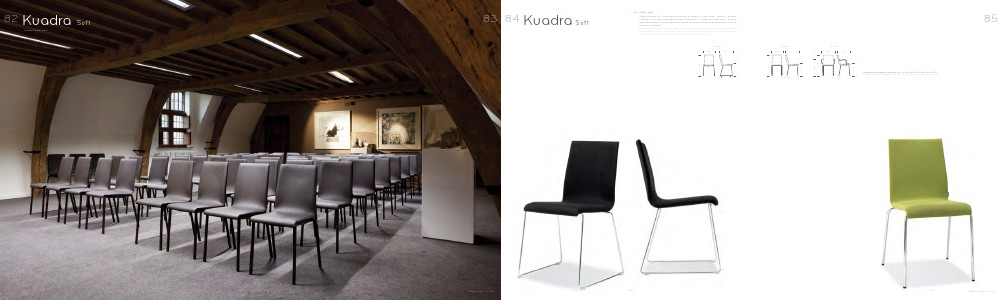 Sedia Kuadra Soft con scocca rivestita in tessuto o finta pelle. Telaio in tondino