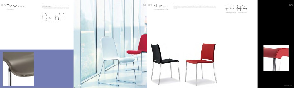 Sedia Trend con scocca rivestita in cuoio rigenerato, cuciture in tinta.