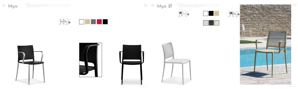 Mya Tecnica รจ la versione con seduta in polipropilene e schienale in textilene, nelle varianti sedia e poltrona.