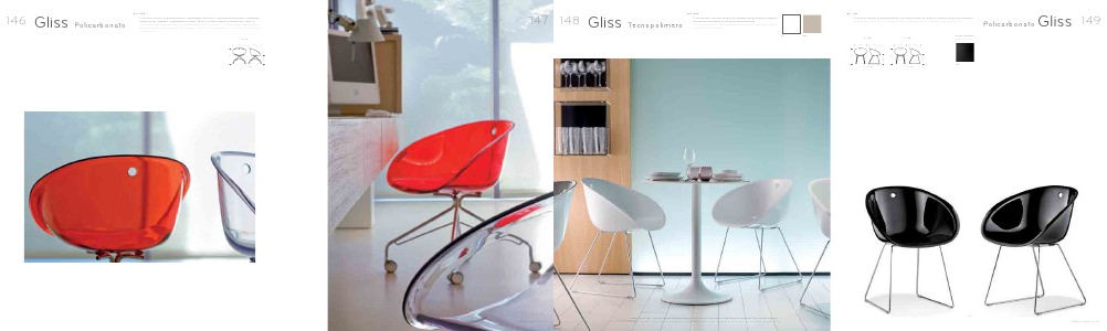 Gliss con scocca in policarbonato full colour nero su telaio in tondino d’acciaio cromato.
