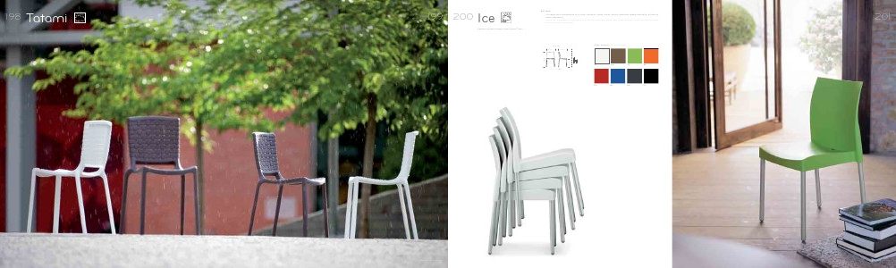 La sedia Ice è disponibile in 8 colori: arancio, verde, rosso, avorio, marrone, grigio antracite, azzurro e