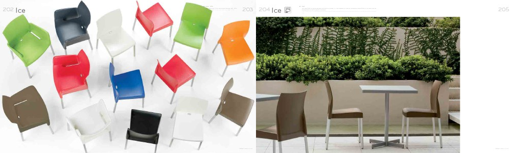 Ice made with UV rays resistant polypropylene and anodized aluminium tube legs Ø28mm. Suitable also for outdoor