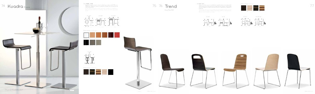 50x50 mm. Seduta in cuoio o in multistrati. Girevole con meccanismo di