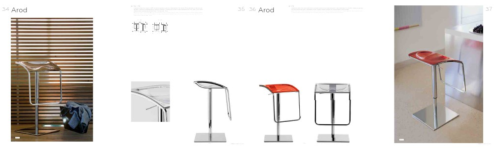 Arod bar stool, central base and swivel column, with gas lift device adjustable in height. Acrylic seat, glossy finish,