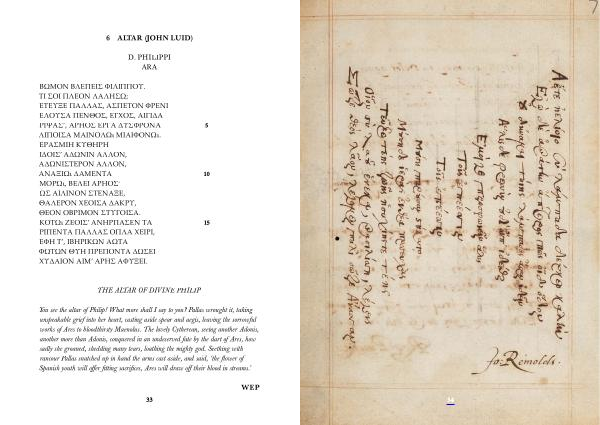 ΒΩΜΟΝ ΒΛΕΠΕΙΣ ΦΙΛΙΠΠΟΥ . ΤΙ ΣΟΙ ΠΛΕΟΝ ΛΑΛΗΣΩ ; ΕΤΕΥΞΕ ΠΑΛΛΑΣ , ΑΣΠΕΤΟΝ ΦΡΕΝΙ ΕΛΟΥΣΑ ΠΕΝΘΟΣ , ΕΓΧΟΣ , ΑΙΓΙΔΑ ΡΙΨΑΣ ’, ΑΡΗΟΣ ΕΡΓΑ ΔΥΣΦΡΟΝΑ 5 ΛΙΠΟΙΣΑ ΜΑΙΝΟΛΩι ΜΙΑΙΦΟΝΩι . ΕΡΑΣΜΙΗ ΚΥΘΗΡΗ ΙΔΟΙΣ ’ ΑΔΩΝΙΝ ΑΛΛΟΝ , ΑΔΩΝΙΣΤΕΡΟΝ ΑΛΛΟΝ , ΑΝΑΞΙΩι ΔΑΜΕΝΤΑ 10 ΜΟΡΩι , ΒΕΛΕΙ ΑΡΗΟΣ · ΩΣ ΑΙΛΙΝΟΝ ΣΤΕΝΑΞΕ , ΘΑΛΕΡΟΝ ΧΕΟΙΣΑ ΔΑΚΡΥ , ΘΕΟΝ ΟΒΡΙΜΟΝ ΣΤΥΓΟΙΣΑ . ΚΟΤΩι ΖΕΟΙΣ ’ ΑΝΗΡΠΑΣΕΝ ΤΑ 15 ΡΙΠΕΝΤΑ ΠΑΛΛΑΣ ΟΠΛΑ ΧΕΙΡΙ , ΕΦΗ Τ ’, ΙΒΗΡΙΚΩΝ ΑΩΤΑ ΦΩΤΩΝ ΘΥΗ ΠΡΕΠΟΝΤΑ ΔΩΣΕΙ ΧΥΔΑΙΟΝ ΑΙΜ ’ ΑΡΗΣ ΑΦΥΞΕΙ .