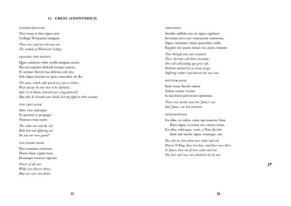 You who are born from roses white and red , Protect , O King , these two bars , and these roses three . O James , born out of roses white and red , Our bars and roses now protected are by you .