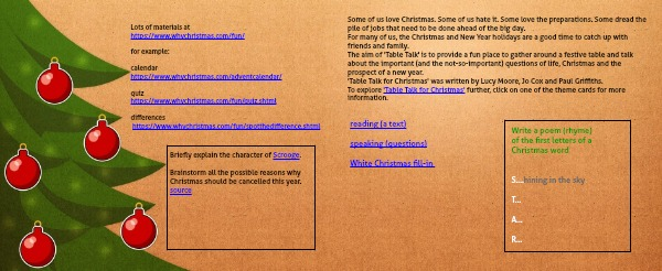 To explore 'Table Talk for Christmas' further, click on one of the theme cards for more information.