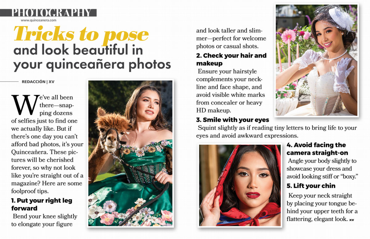 4. Avoid facing the camera straight-on Angle your body slightly to showcase your dress and avoid looking stiff or“ boxy.”