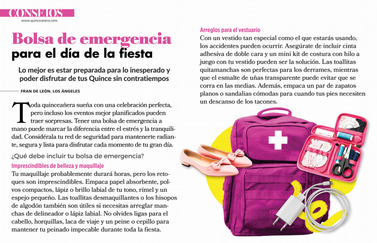Toda quinceañera sueña con una celebración perfecta, pero incluso los eventos mejor planificados pueden traer sorpresas. Tener una bolsa de emergencia a mano puede marcar la diferencia entre el estrés y la tranquilidad. Considérala tu red de seguridad para mantenerte radiante, segura y lista para disfrutar cada momento de tu gran día.