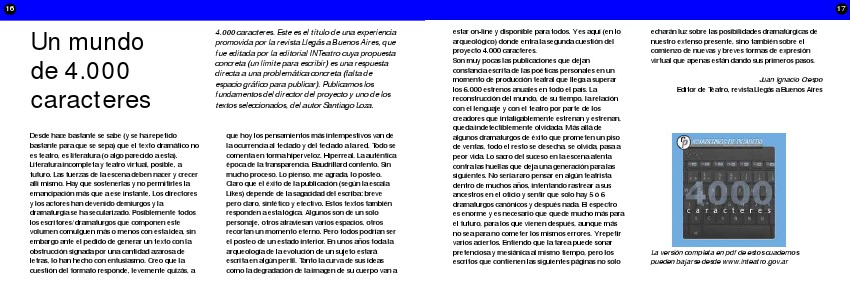 fue editada por la editorial INTeatro cuya propuesta