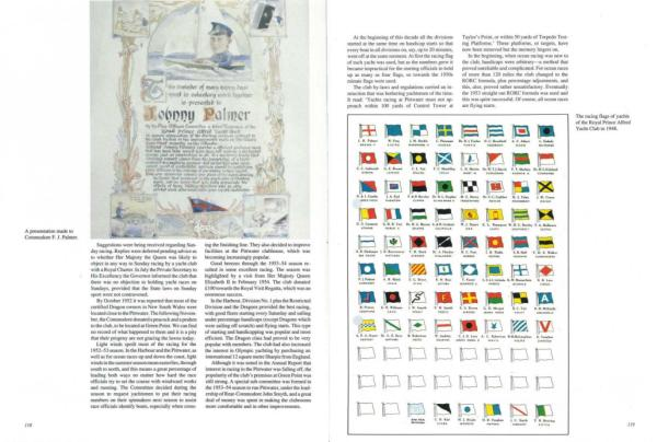 By October 1952 it was reported that most of the certified Dragon owners in New South Wales were located close to the Pinwater . The following November . the Commodore donated a peacock and a peahen to the club , to be located at Green PoinL We can find no record of what happened to them and it is a pity thm their progeny a (' C not gracing the lawns today .