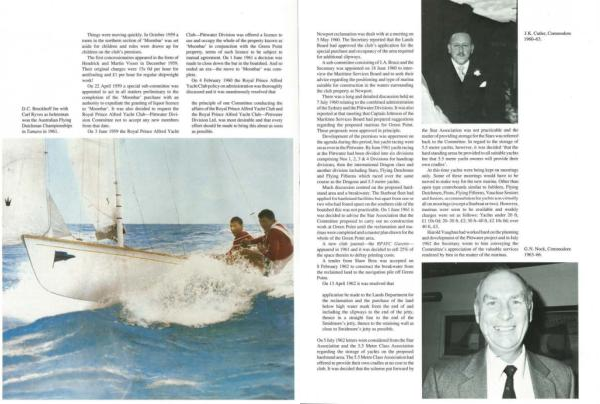 On 22 April 1959 a special sub- ;: ommiuee was appointed to act in all matters preliminary to the completion of the ' Moon bar ' purchase with an authority to expediatc the grnnting of liquor licence to ' Moonbar '. IL was also decided 10 request the Royal Prince Alfred Yucht Clul > -Piuwater Division Co111mi11ee not to accept any new members from that date .