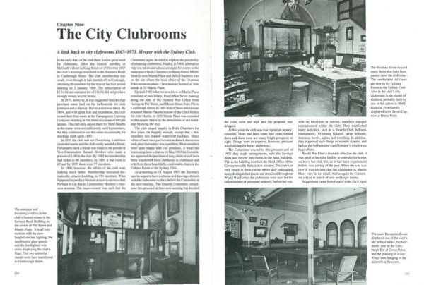 A look back to cily clubrooms 1867-1973 . Merger wiJh the Sydney Club .