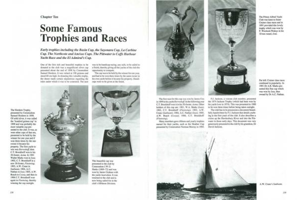 This beautiful cup was presented to the club by Commodore 1 . W . 0 . Hanks ( l869-72 ) and was won by James Graham with the yacht A11srralian . It WM returned to the club and is now being sailed for in tl1e club ' s Offshore Division .