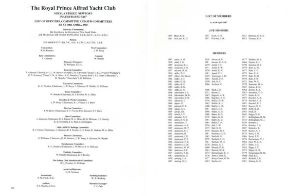 General Con1miltee : J . Allanson (" Huon Lass "), J . W . Berry (" Scandal "), R . F . Fowler (" Justus "}, R . J . Friend (" Windana "), P . 0 . Kenneu (" Veuve "). W . A . Miles , R . G . Prentice {" Capt11in Irish ''), P . J . Shaw (" Philander "), W . Wardle (" Hamefarin "), G . Williams