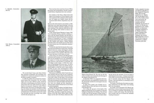 On 12 May the sad news of the death of His Majesty King Edward Vll was spoken of with great feeling by Commodore N . H . Murray . The club sent a cable co the Private Secretary of King George V , expressing its sympathy , and received replies thanking the club for the messages . lt was not cheap to cable England inthosedays-3s0d per word ! In July