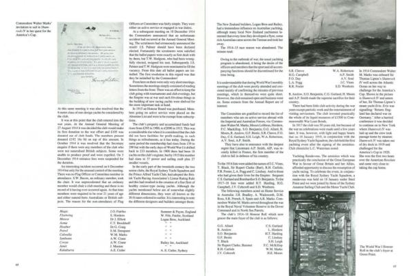 The foUowing members ac1ed on Home Service in Australia : J . B . Bradley , A . Wadswonh , O . M . Ross , S . R . French , S . Spain and A . R . Marks . Com · modorc Walter M . Marks served througbou1 the war in the Royal Naval Volunteer Reserve in the Dover Command and in North Sea Patrols .