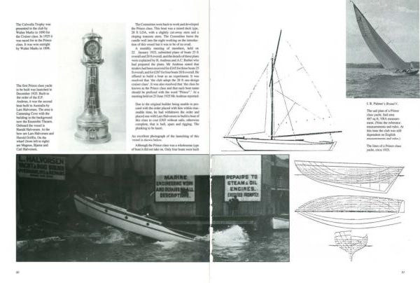 A monthly meeting of n1 ¢ mbers , held on 22 January 1925 , submiued plans of boats 25 fl overall and 28 fl overn . 11 , and thedemils of lbese plans were explained by H . Andreas and A . C . Barber who had prepared the plans . Mr Andreas slated that tenders had been received for £ 245 forthreeboats25 ft overJll , und for £ 267forfour boats28 ft overall . He offcrcd to build a bout as an experimenL Lt was resolved that ' the club adopt the 28 ft one-design cruiser class '. It was also resolved that ' the class be known as the Prince class and that each boat name should be prefhed with the won ! " Prince- : At a meeting held on 25 June 1925 Mr Andreas reported :