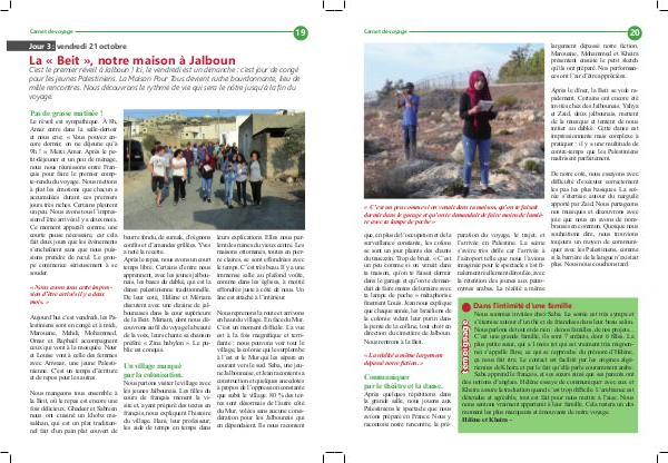 que, en plus de l’ occupation et de la surveillance constante, les colons se sont un jour plaints des chants du muezzin. Trop de bruit. « C’ est un peu comme si on venait dans ta maison, qu’ on te faisait dormir dans le garage et qu’ on te demandait de faire moins de lumière avec ta lampe de poche » métaphorise finement Louis. Jean nous explique que chaque année, les Israéliens de la colonie vident leur purin dans la pente de la colline, tout droit en direction du cimetière de Jalboun. Nous rentrons à la Beit.
