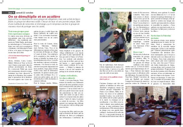 Aujourd’ hui, la répartition en sous-groupe est obligatoire, mais cela se fait de façon fluide. Le groupe est désormais solide. Chacun de nous vit une journée unique, faite d’ une multitude de rencontres et d’ échanges, qu’ il s’ empresse une fois le groupe de nouveau réuni de partager avec les autres.