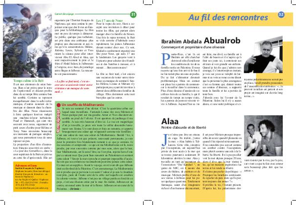 Puerto-Rico, c’ est là où Ibrahim est allé chercher du travail afin d’ améliorer les conditions de vie de sa famille restée en Palestine. Il nous raconte qu’ une fois arrivé là-bas il ne lui restait plus un sous en poche. De ce fait s’ alimenter devenait problématique. Mais un contact sur place lui a permis de commencer à travailler dans le commerce. Plus d’ une dizaine d’ années de sacrifices loin de sa famille, à qui il rendait de temps en temps visite, lui a permis de pouvoir revenir vivre à Jalboun. Aujourd’ hui sa vie est faite, me dit-il, sa famille est à l’ abri du besoin et il n’ aspire qu’ à finir ses jours ici, à entretenir ses oliviers et voir grandir ses enfants. Quand je lui dis que j’ admire son courage, il s’ interrompt un instant, je vois ses yeux se remplir de larmes et sa voix se noue en me disant que la personne la plus courageuse c’ est sa femme qui, durant toutes ces années d’ absence, a supporté toute la famille et lui a permis de tenir bon. J’ aborde avec lui l’ avenir de la Palestine. Selon lui il n’ y a aucun doute, si une unité politique et citoyenne palestinienne ne se met pas en place, Israël prendra possession de l’ ensemble des territoires: «... le pouvoir israélien est patient et son projet est imaginé sur du très long terme...».