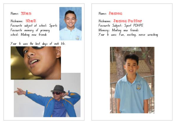 Name: James Nickname: James Potter Favourite Subject: Sport PDHPE Memory: Meeting new friends Year 6 was: Fun, exciting, nerve wracking